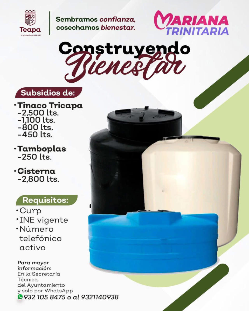 Mayores informes en la Secretaría Técnica del Ayuntamiento o a los números de WhatsApp 9321058475 y 9321140938.