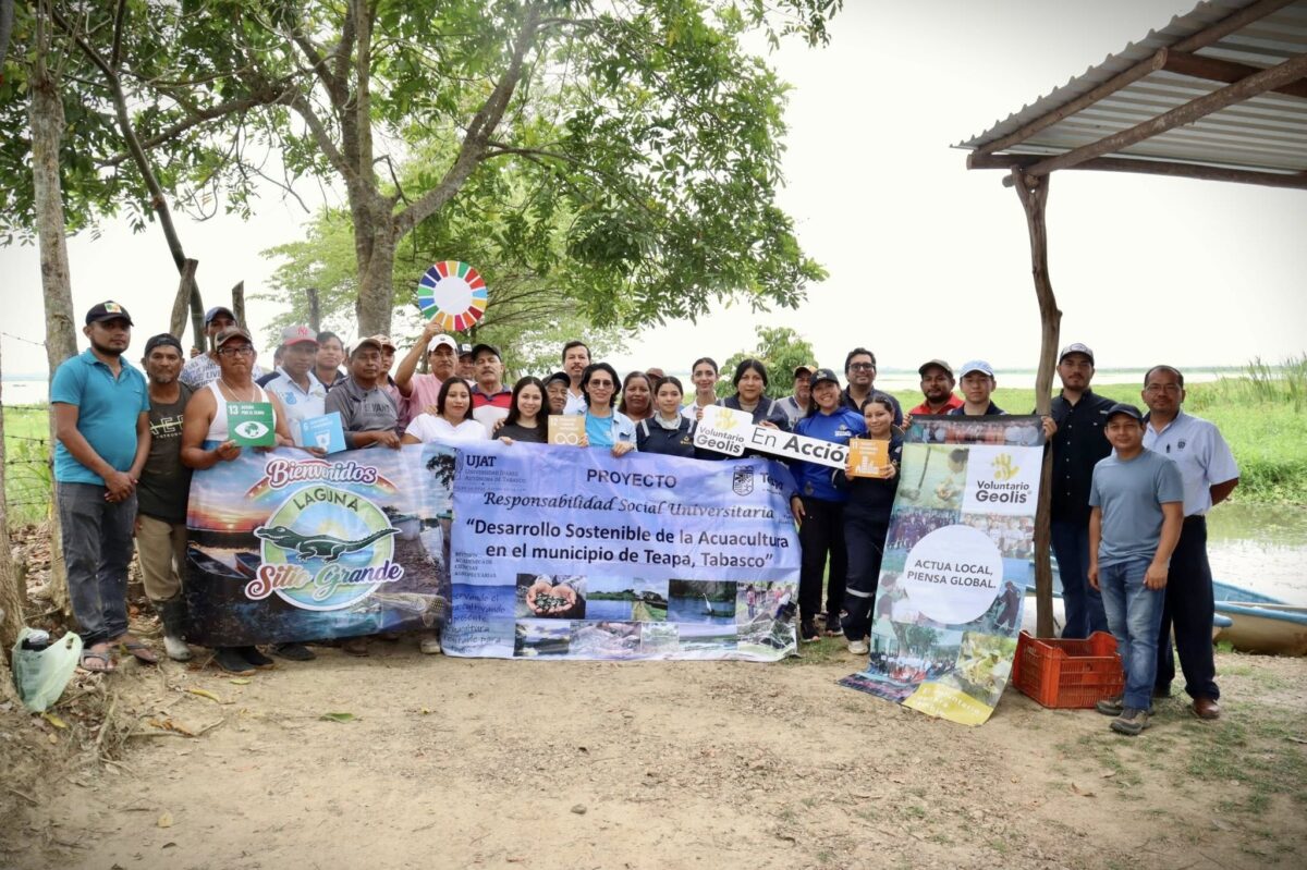 En el marco del convenio de colaboración entre la Universidad Juárez Autónoma de Tabasco (UJAT) y la empresa Geolis, se llevó a cabo la liberación de ejemplares de peces en la laguna Sitio Grande de nuestro municipio. Esta actividad es parte del compromiso de Geolis con la responsabilidad social y ambiental, que incluye el respaldo a investigaciones y producción de especies de peces en el Laboratorio de Acuicultura de la UJAT.