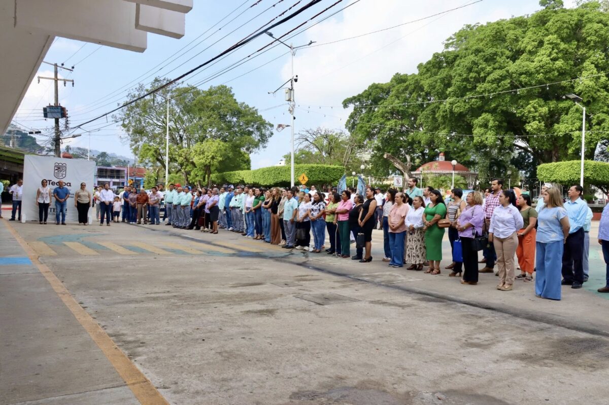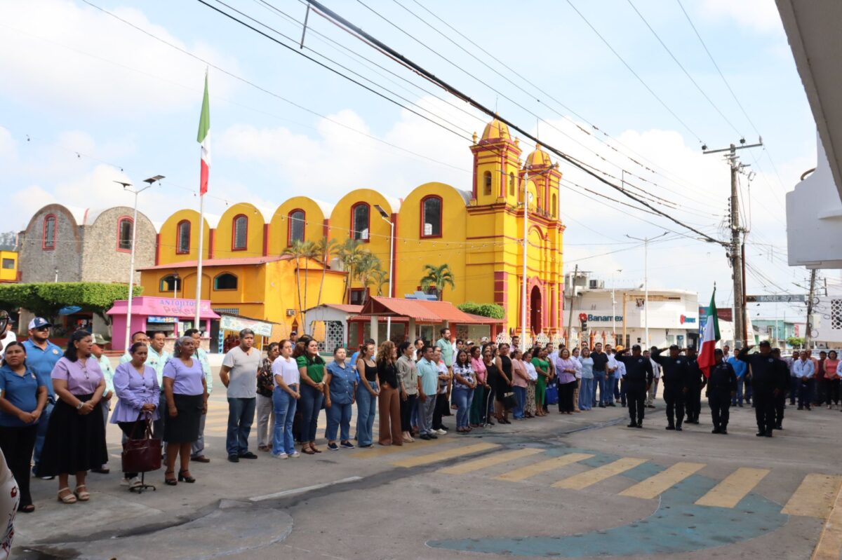 Como parte del inicio de semana, se llevó a cabo el homenaje al lábaro patrio en el Ayuntamiento de Teapa.